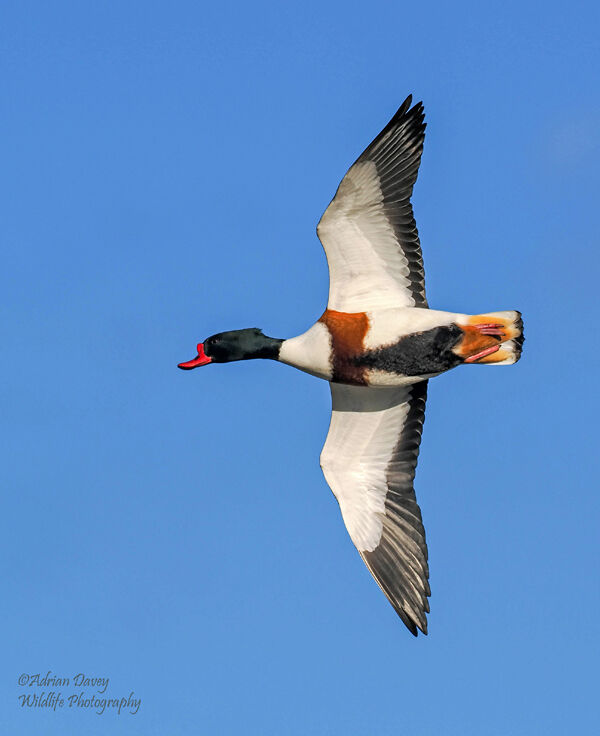 A Shelduck in flight taken at at Slimbridge WWT in November